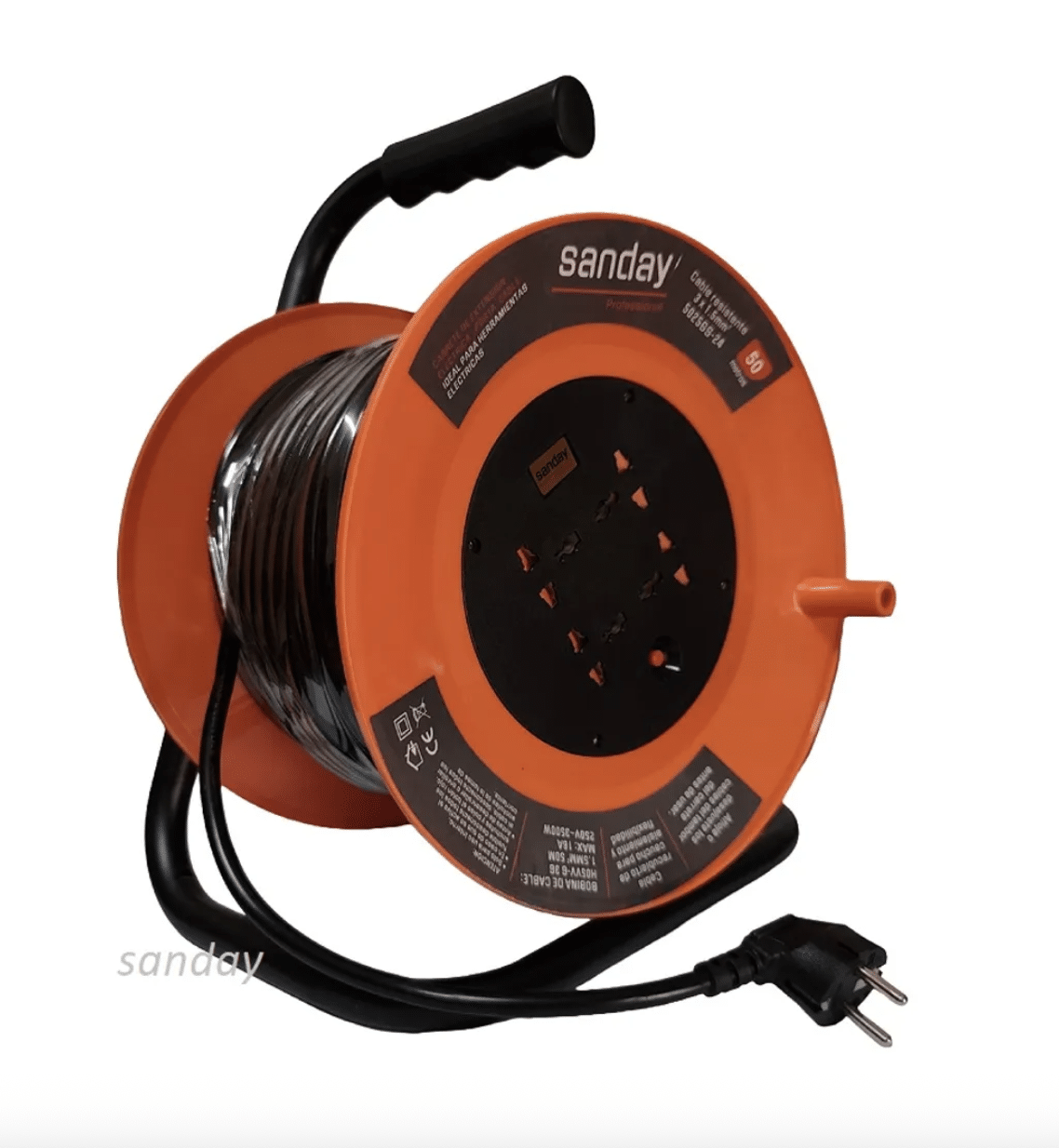 Su sistema tipo carrete (reel) facilita enrollar y desenrollar el cable de forma ordenada, evitando enredos y permitiendo un almacenamiento más práctico y seguro.