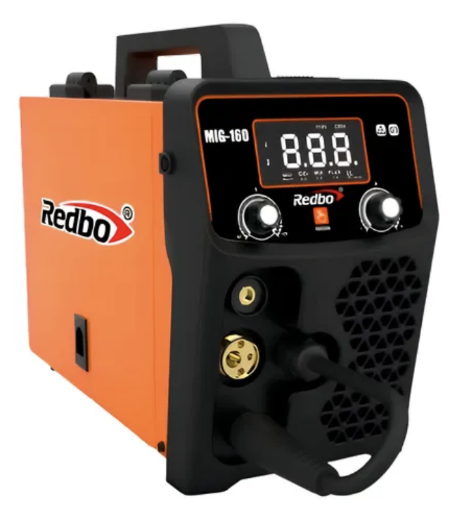 Máquina de soldar inverter REDBO MIG160, con rango de corriente de 50–160A, ideal para trabajos de soldadura MIG en talleres metalmecánicos, mantenimiento y fabricación de estructuras metálicas.